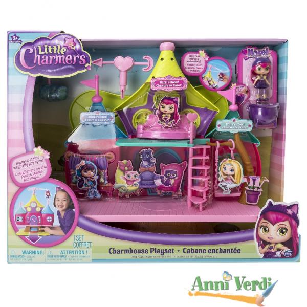 Dal magico mondo di Little Charmers, la Charmhouse per ricreare tutte le avventure della serie. La casa riproduce: la cameretta di Posie con un'altalena realmente funzionante, la camera di Lavender con una speciale area per creare le pozioni magiche, e al secondo piano la cameretta di Hazel. Incluso anche il cucciolo seven, 1 divano, 1 calderone per le pozioni, accessori.