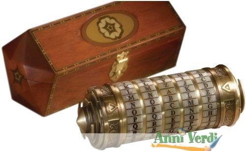 Riproduzione ufficiale dietro licenze cinematografiche Columbia TriStar Direttamente dal libro cult di Dan Brown e dal recente film di Ron Howard con Tom Hanks e Jean Reno, ecco la miniatura in scala 1:1 perfettamente funzionante del Cryptex. Realizzato in pesante metallo inciso ed anticato, può venire aperto solo conoscendo la password adatta ed all'interno può contenere qualsiasi cosa che la vostra immaginazione suggerisca: poesie, messaggi, gioielli o qualsiasi tipo di dono. La password e modificabile a piacimento, quella di default e APPLE esattamente come nel libro.