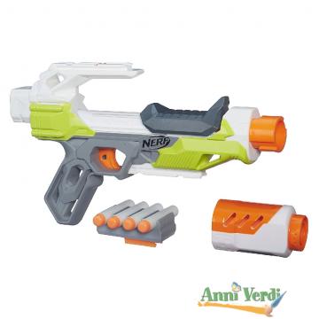 Entra in azione con il Modulus Ionfire e modifica il tuo blaster a seconda delle esigenze. Personalizza l’assetto del blaster con la canna rimovibile e con il porta dardi. Fissa il porta dardi sul carrello tattico per avere sempre a portata di mano una scorta di dardi. Monta la canna per colpi di precisione e rimuovila per attacchi a sorpresa. Il Modulus IonFire lancia un dardo alla volta. Per un'azione sempre più coinvolgente e il massimo del divertimento, non perdere i 4 kit di espansione (venduti separatamente) con cui assemblare il tuo blaster in oltre 1000 combinazioni diverse! Allora vuoi far parte anche tu della squadra per la prossima missione?